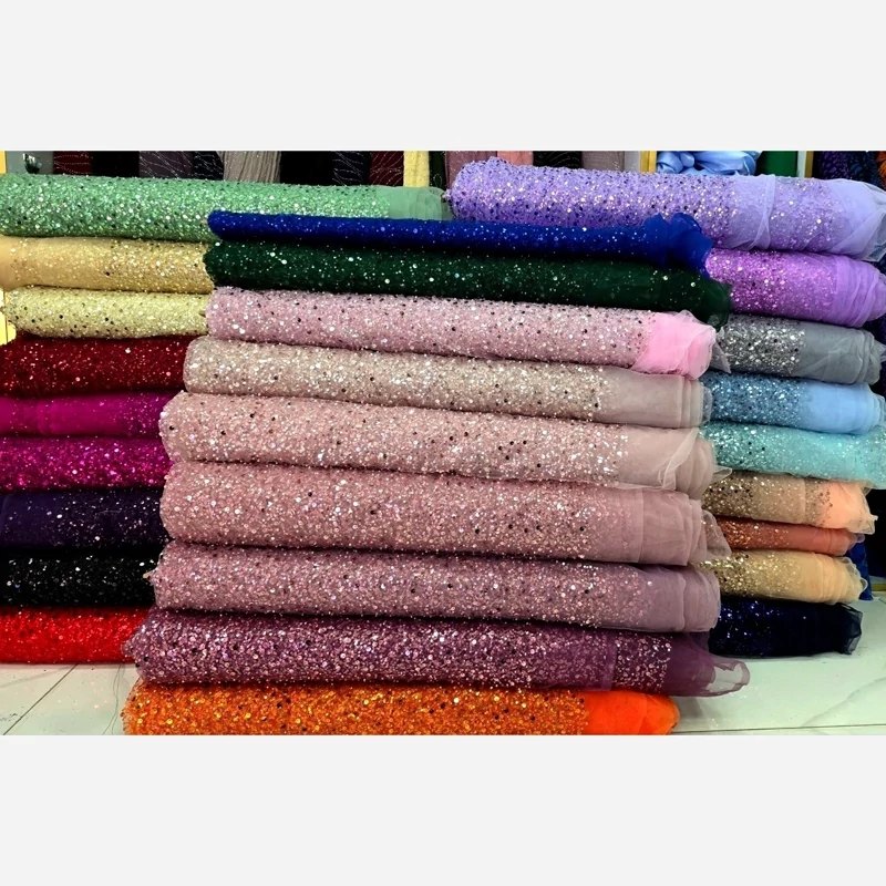 با انتخاب **پارچه تور جسمیکو پولک و مروارید لبوبو**، درخشش و لطافت رو همزمان تجربه کن ✨