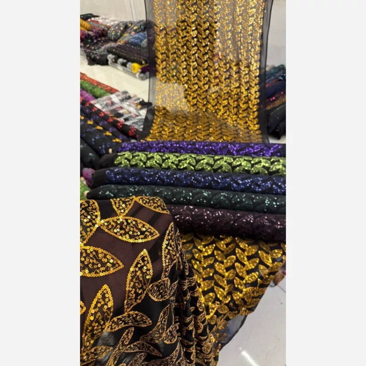 🎗️ پارچه حریر پولک و خامهدوزی گرم بالا 🎗️