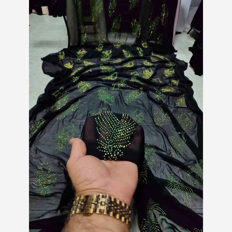 پارچه ای حریر رویایی دوخت لباس های خیره کننده شما حریر سنگدار طاووسی کیفیت بالا طرح دو بعدی جت بلاک