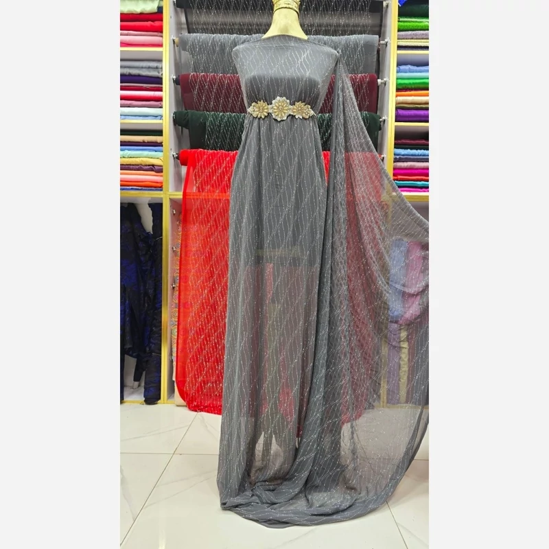 پارچه حریر سنگدار مشکی – انتخابی خاص برای استایل لوکس شما