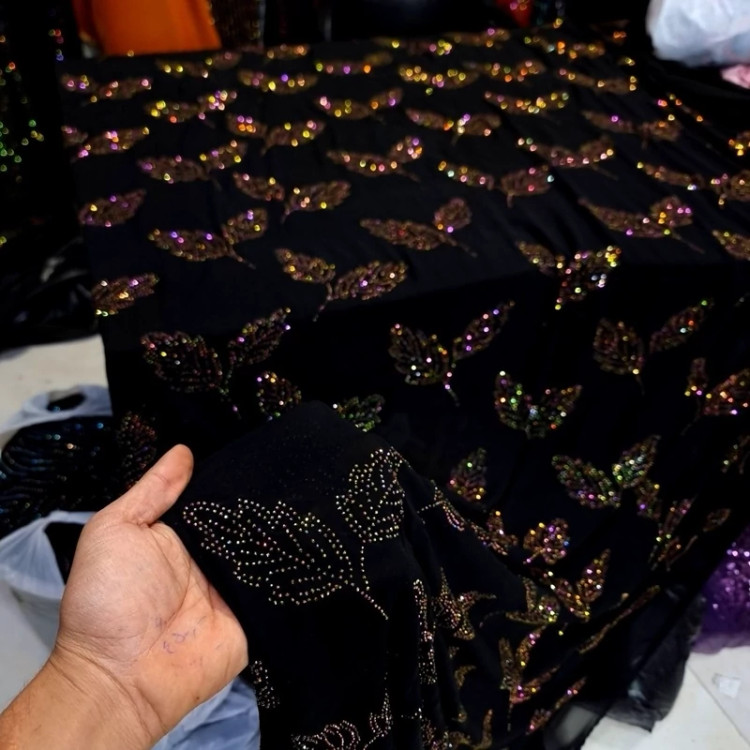 پارچه حریر سنگ جیکو طرح برگی جدید برای لباس های مجلسی وست با کفش زنانه
