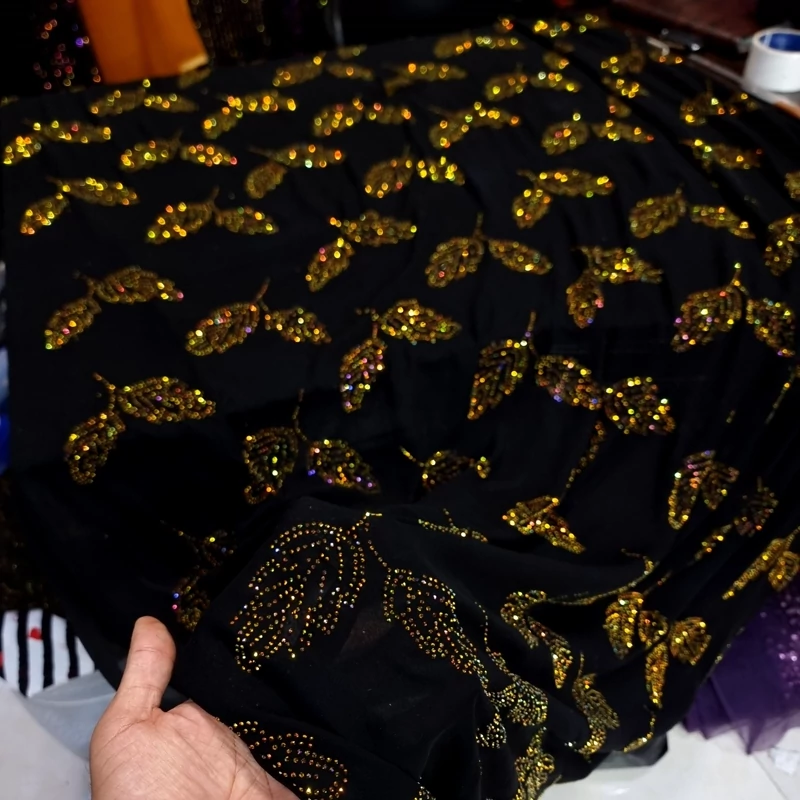 پارچه حریر سنگ جیکو طرح برگی جدید برای لباس های مجلسی وست با کفش زنانه