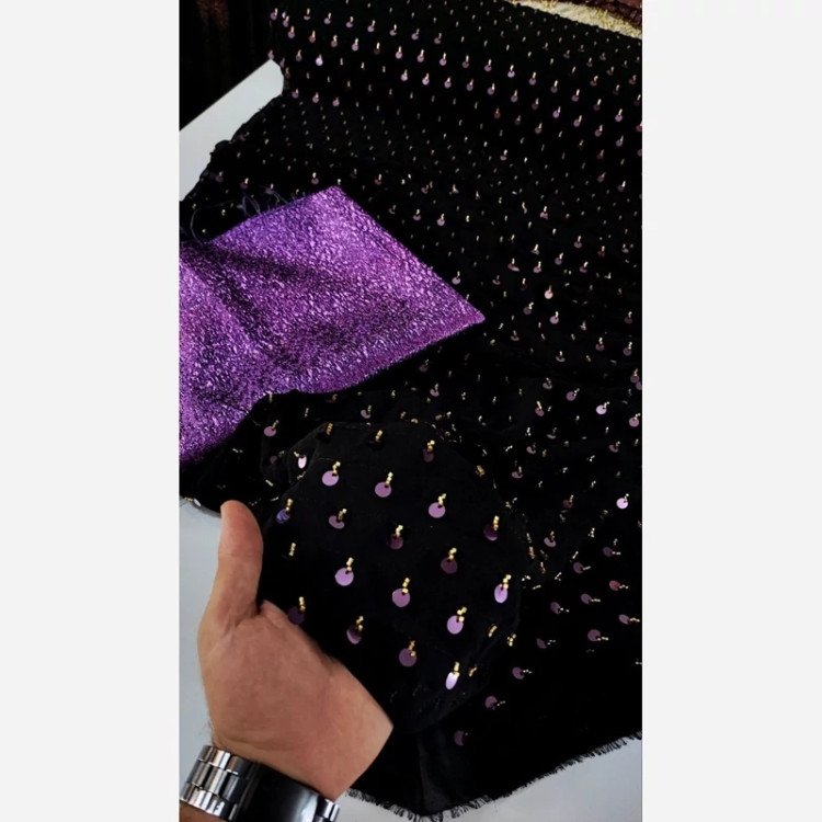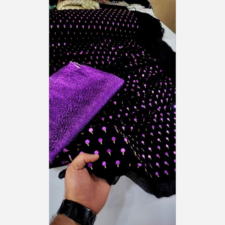 حریر پولک آویز جت بلک بدون کشسانی نیاز به استر دارد بدون ریزش 8 رنگ عرض150 قواره 3م