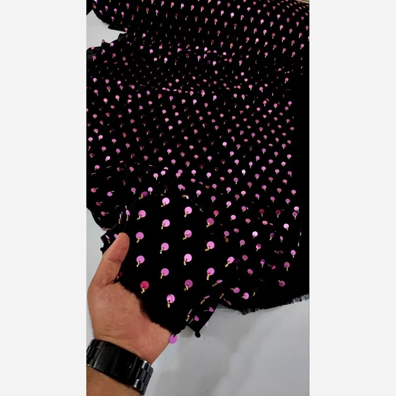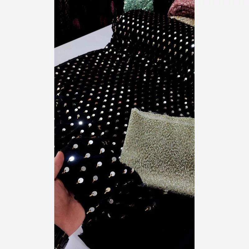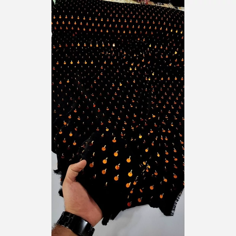 حریر پولک آویز جت بلک بدون کشسانی نیاز به استر دارد بدون ریزش 8 رنگ عرض150 قواره 3م