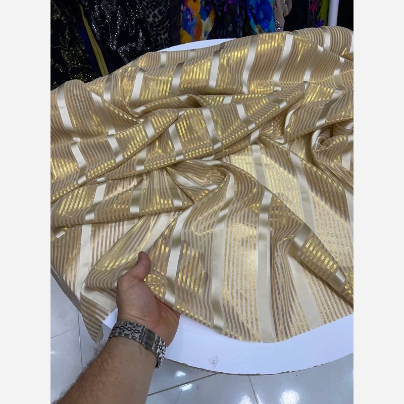 حـــراجــی ویـژه پارچه حریر لاین ساتن سیم طلایی عرض 115 سانتی متر قواره 3.5 متر مناسب یک دست کامل لباس