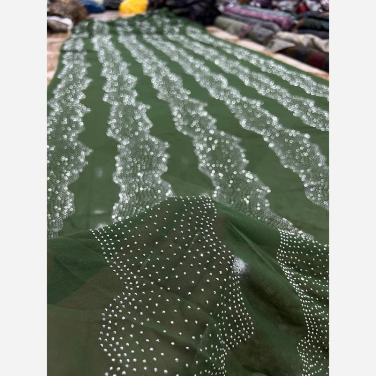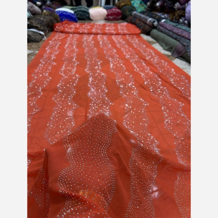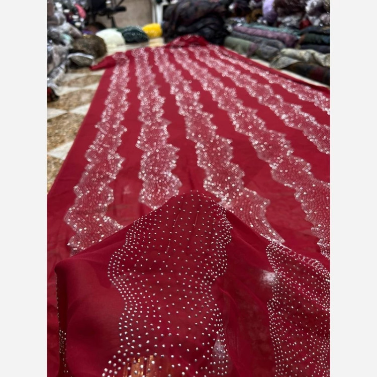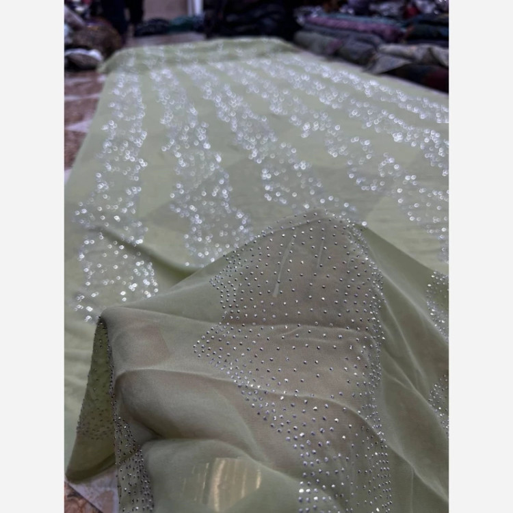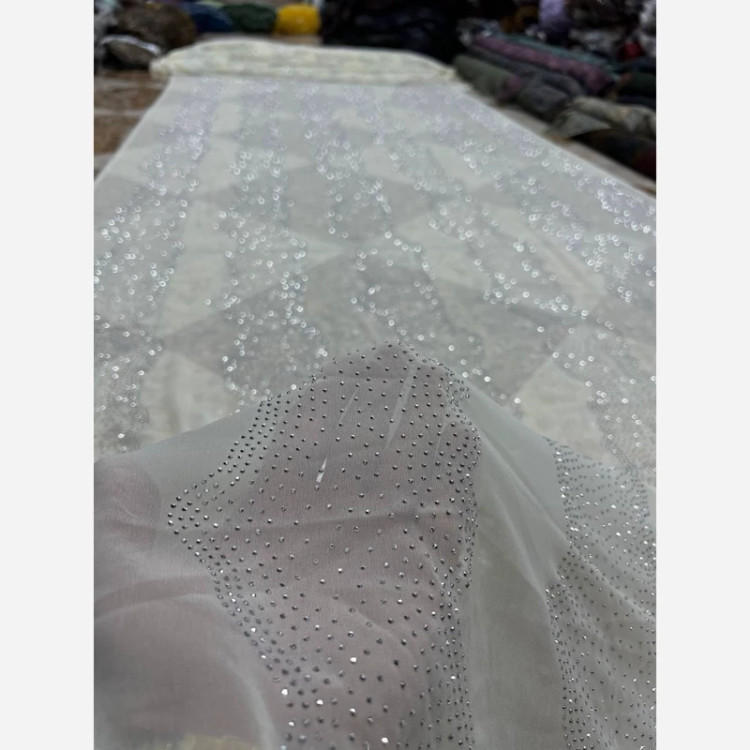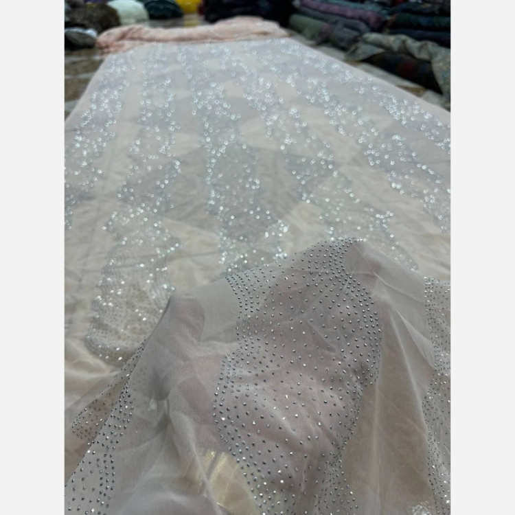 پارچه ای رویایی برای دوخت لباس های خیره کننده شما جنس حریر نگین دار موجی با کیفیت بالا طرح دو بعدی جت بل