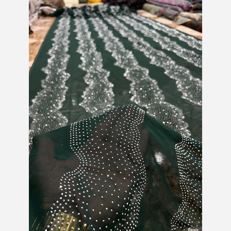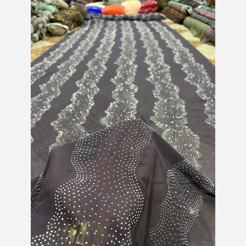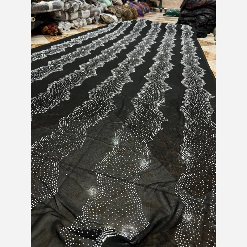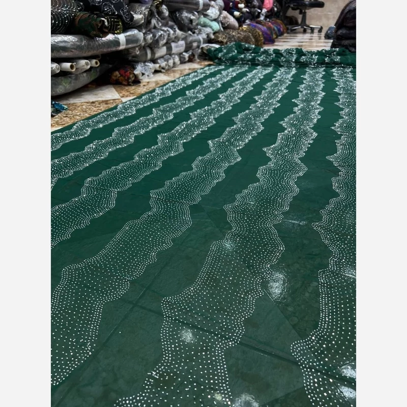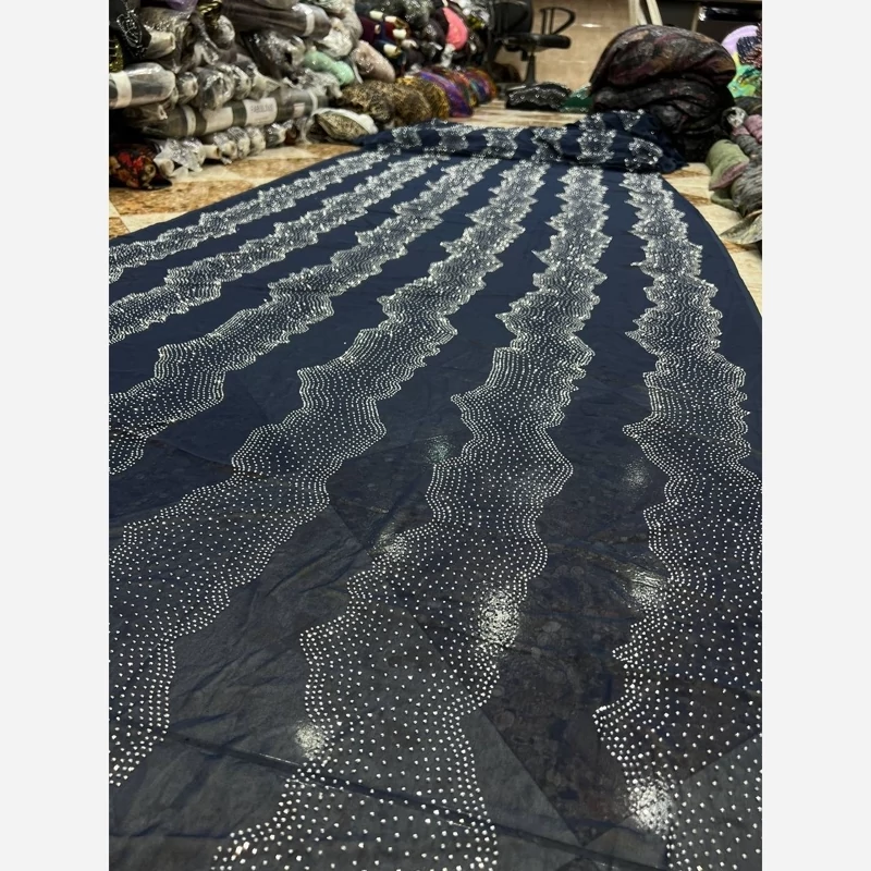 پارچه ای رویایی برای دوخت لباس های خیره کننده شما جنس حریر نگین دار موجی با کیفیت بالا طرح دو بعدی جت بل