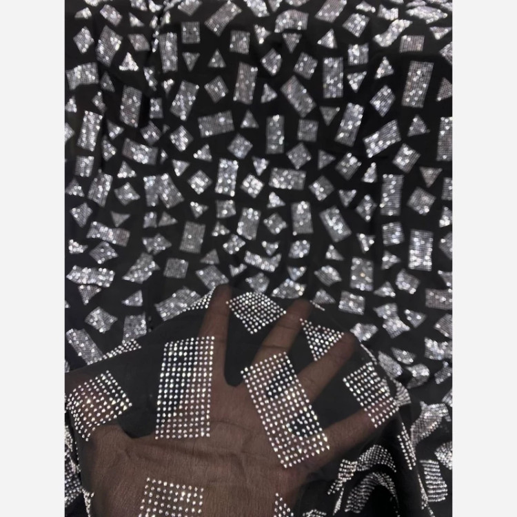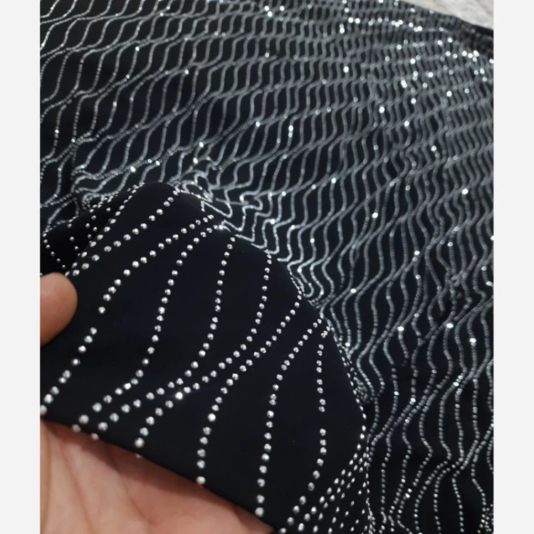 فروش پارچه حریر سنگدار مشکی با طراحی زیبا